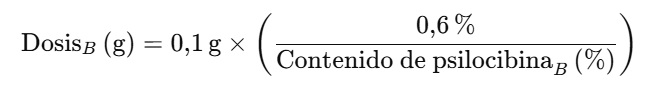 La forma correcta de calcularla es a partir del peso seco del hongo y su contenido de psilocibina (%).