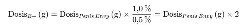[math]\text{Dosis}_{B+} = 0{,}1\,\text{g} \times 2 = 0{,}2\,\text{g}[/math]